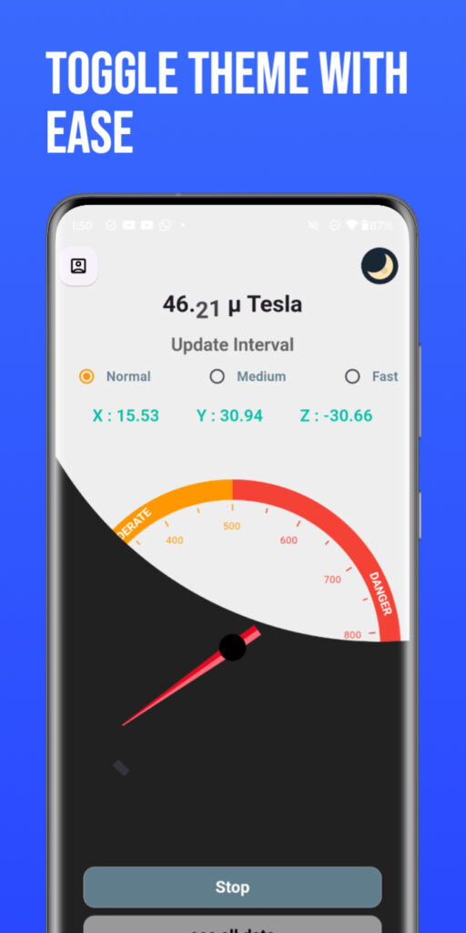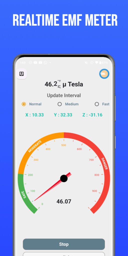 This app utilizes your device’s hardware sensors (specifically the magnetometer) to detect Electromagnetic Fields (EMF). This data is processed locally in real-time to provide the app’s core functionality. We do not store, record, transmit, or share any sensor data from your device.